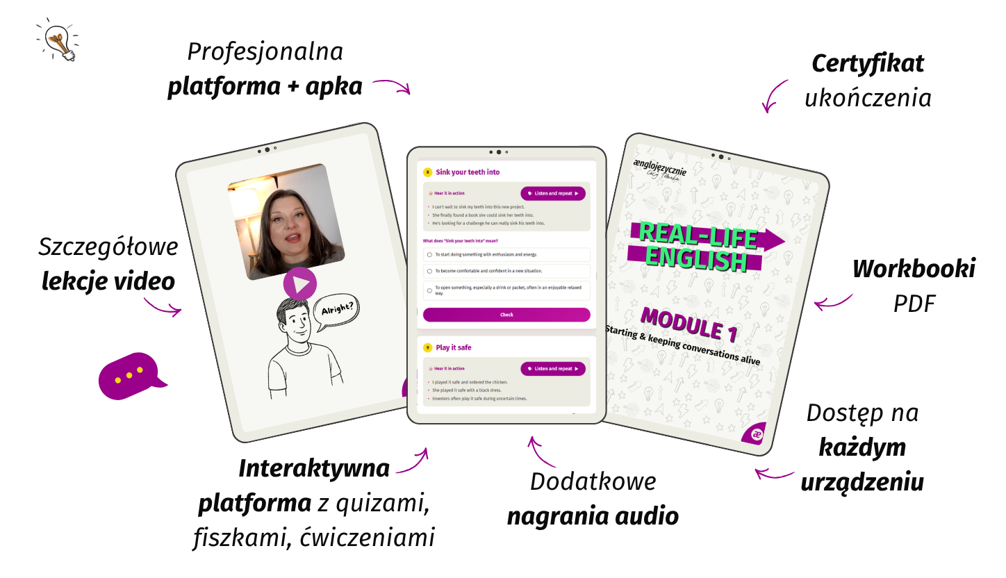 Dzięki temu Twój angielski zacznie mieć charakter i „vibe” osoby pewnej siebie, otwartej i naturalnej w kontaktach z innymi.